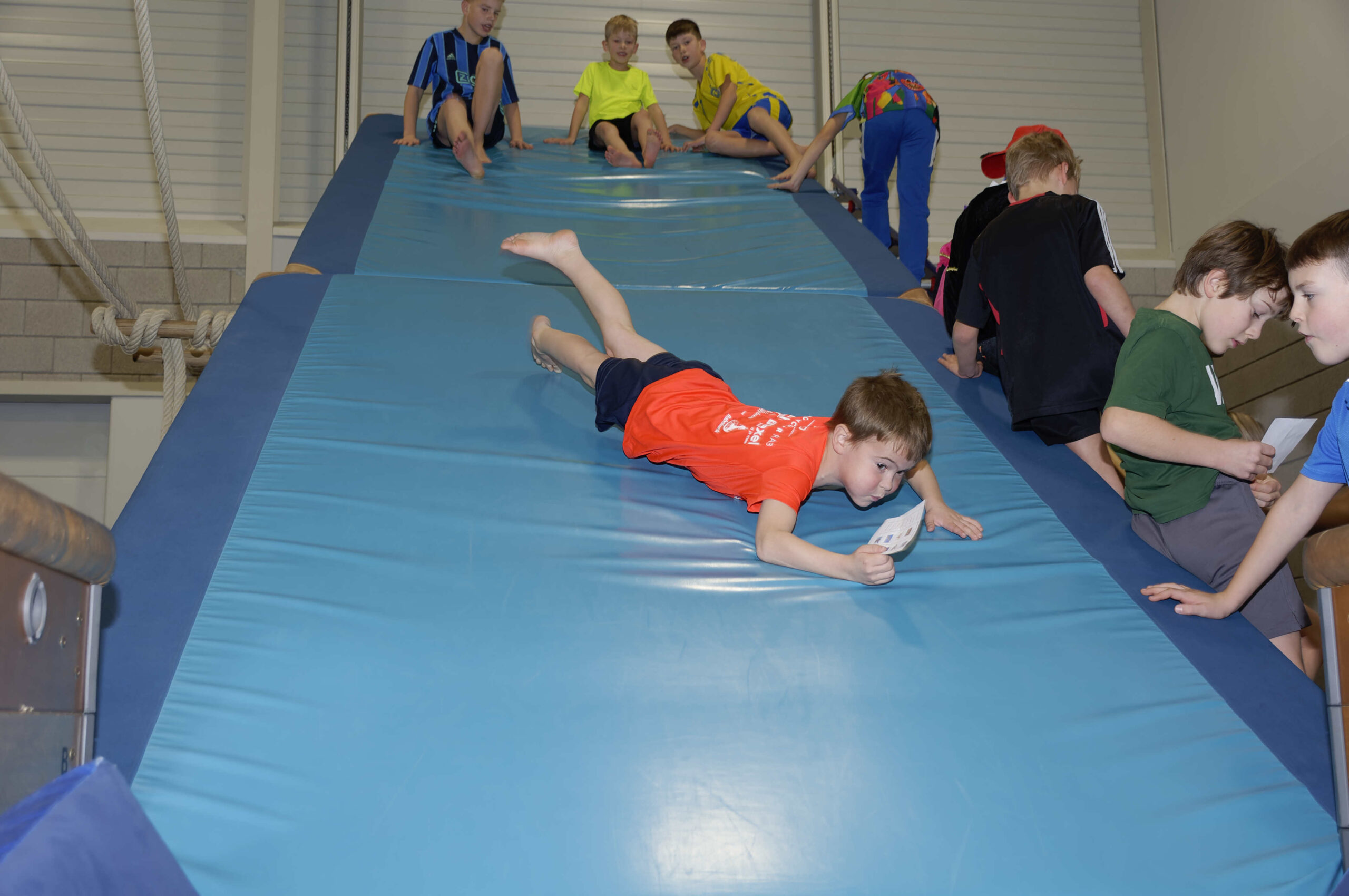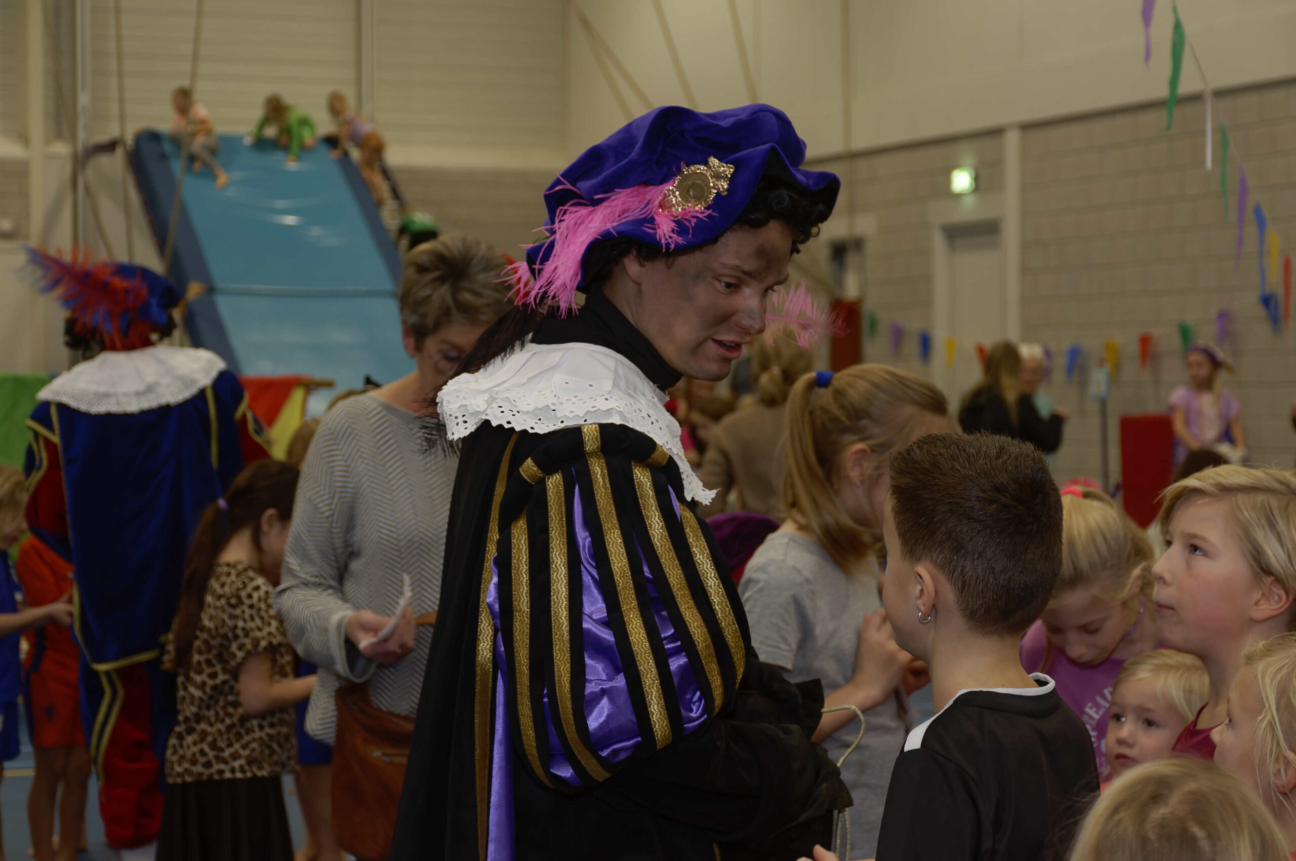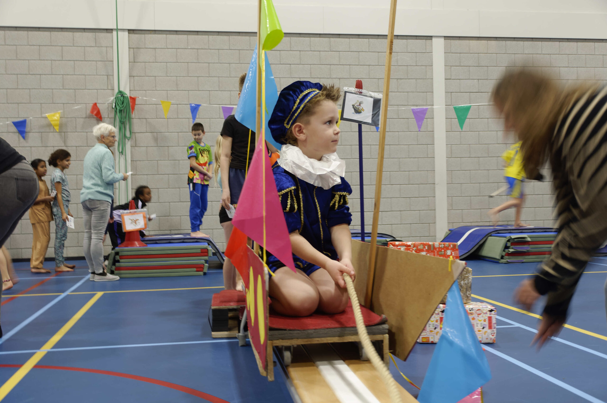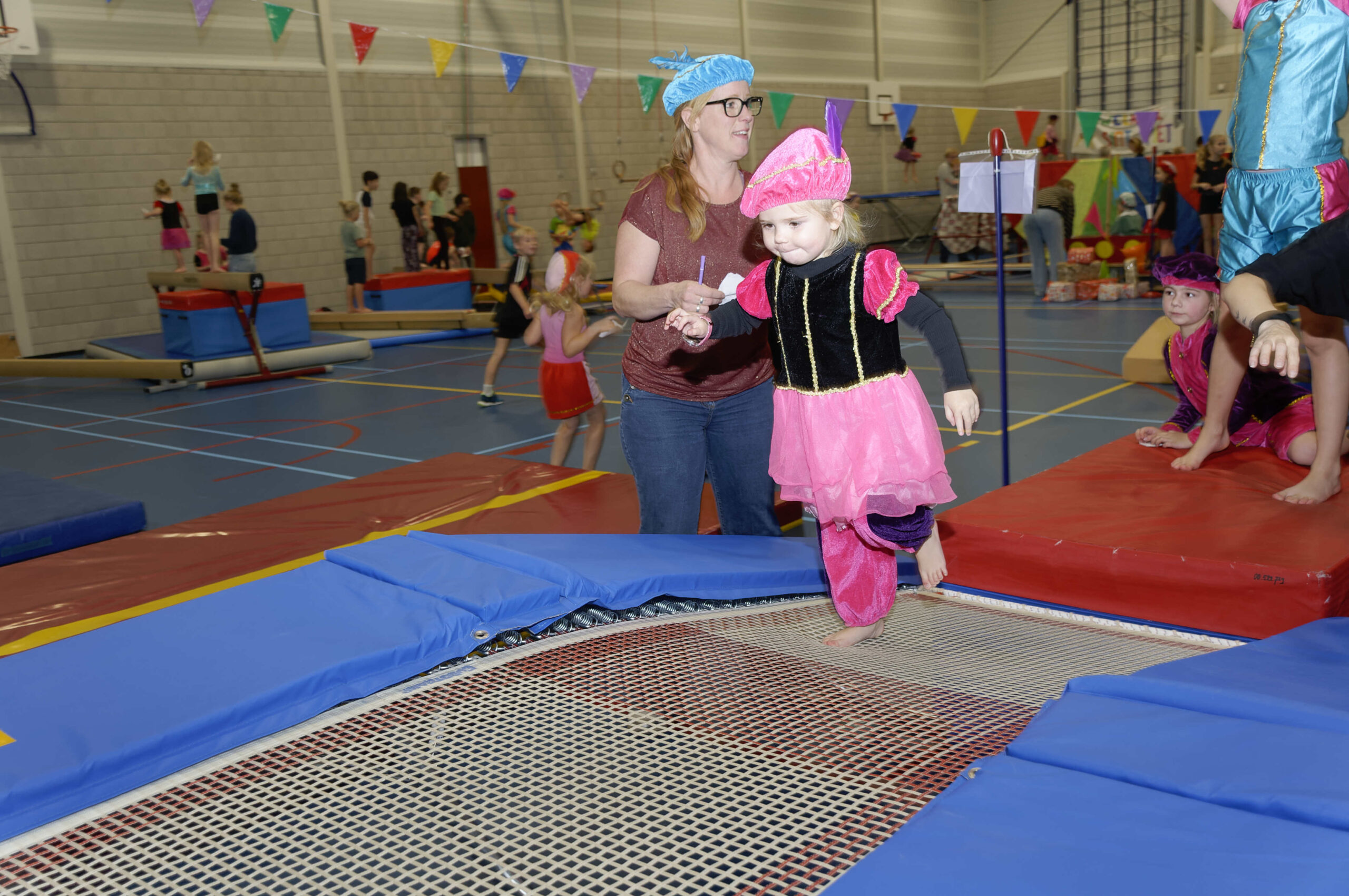 Volop belangstelling voor de pietengym op 26 november. Overal in de zaal konden de jongste kinderen meedoen aan allemaal uitdagende sinterklaasopdrachten. Er werd geklommen op de daken, stoomboot varen, zwaaien en zwieren en nog veel meer. Gelukkig hadden Sil, Eva en Kevin voldoende hulp om alles te regelen en te begeleiden. Ook Sinterklaas met kwam even op bezoek om te genieten van alle kunsten en capriolen die de kinderen al konden laten zien. De meegekomen pieten wisten wel hoe ze de verschillende hindernissen moesten nemen. Al met al weer een geslaagde middag.