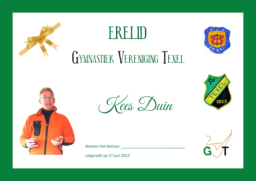 Dat sportverenigingen zoals GVT het niet altijd makkelijk hebben bleek ongeveer 12 jaar geleden toen het toenmalige bestuur de vereniging wilde opheffen. Kees heeft, toen hem dat ter ore kwam, onmiddellijk actie ondernomen en dat op de opheffingsvergadering weten te voorkomen door er voor te zorgen dat een nieuw bestuur kon aantreden waarvan hij zelf het voorzitterschap op zich nam. Zo komt het dat er heden ten dage een nog bloeiende GVT bestaat, dat in 2023 haar honderdjarige bestaan mocht vieren en toen Kees het welverdiende erelidmaatschap verleende.